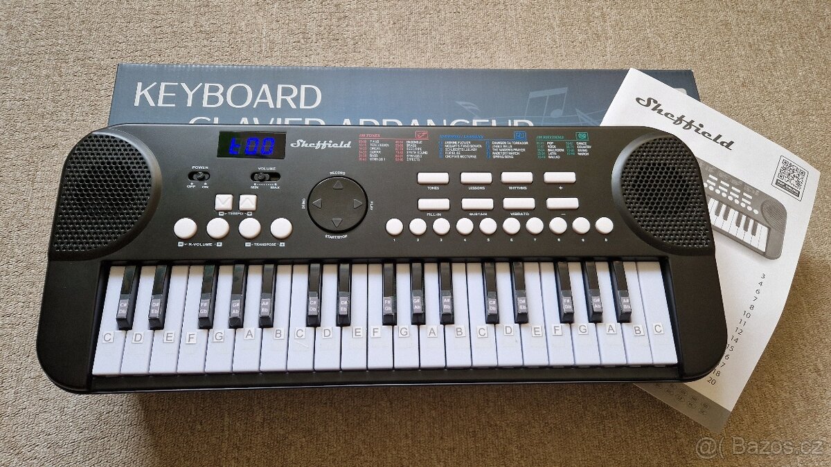 Elektronicke klavesy - 37 klaves,3 oktavy. Vhodne pro zacatecniky nebo deti. Pouze na baterie 4x (nizka spotreba,stale hraje na puvodnich),bez moznosti zapojit sluchatka.Ruzne funkce.Popis viz.foto.Obcas