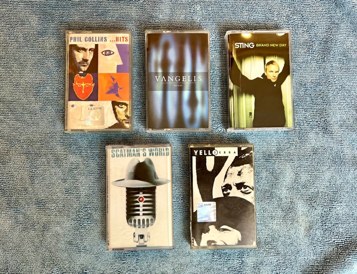 Yello-Zebra,Sting-Brand New Day,Phil Collins-Hits,Scatman John-Scatman´ n World,Vangelis-Voices.Kazety v krásném stavu.200Kč/kus nebo vše za 700Kč/5ks.Předání osobně v Mělníku nebo Zásilkovna.