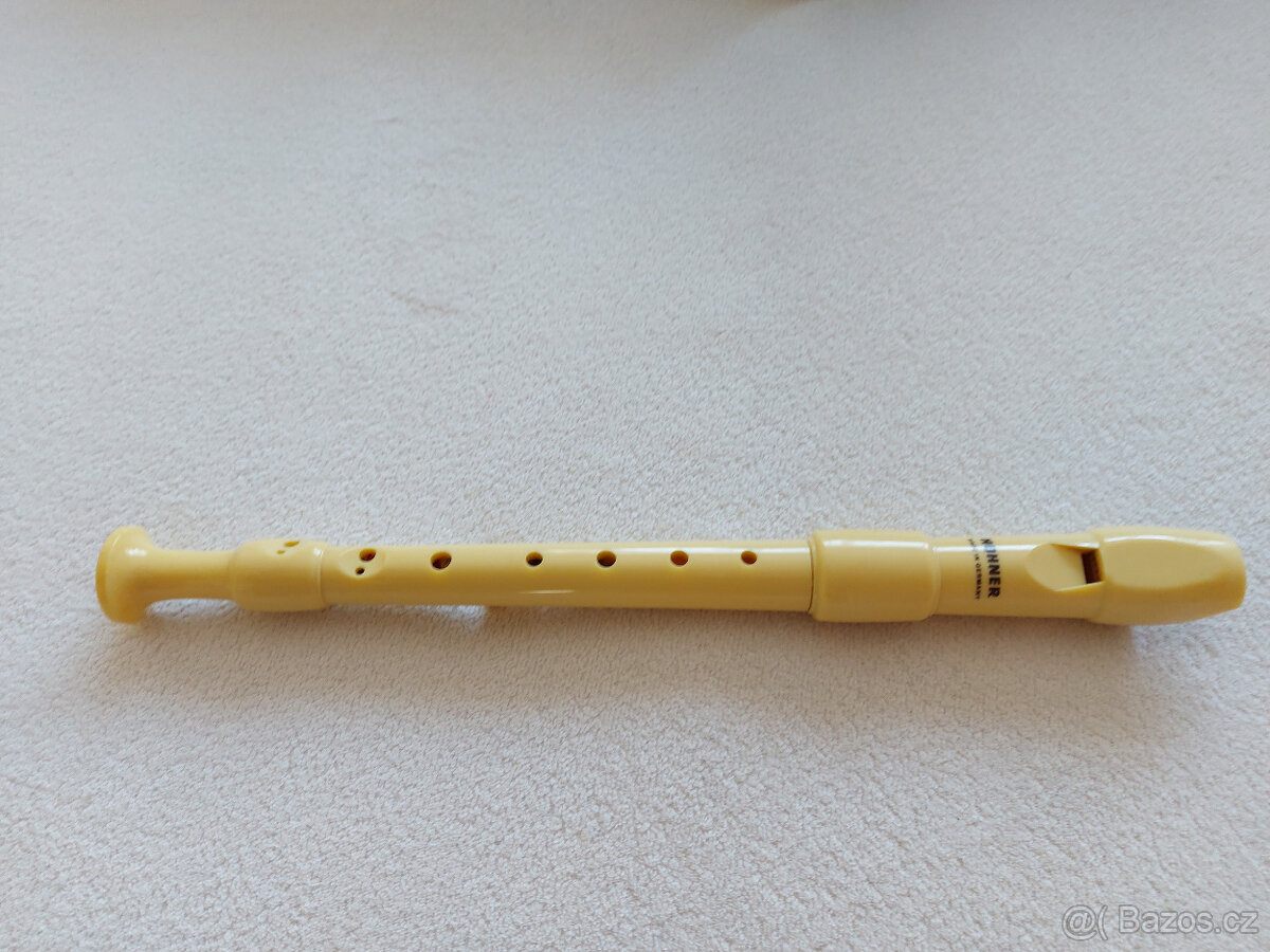 Školní, sopránová zobcová flétna HOHNER, stav nového nástroje s orginálním vytěrákem.