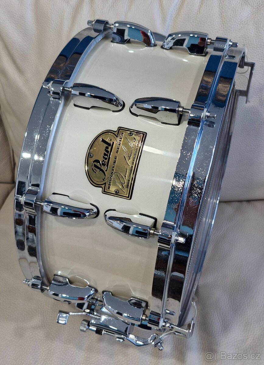 SBÍRKA DENNIS CHAMBERS 14x6,5 SNARU - [21.12. 2025]Ahoj, rozhodl jsem se rozprodat svoji sbírku limitovaných bubnů Pearl Dennis Chambers limited edition 24k gold pozlacení hardware. Maple + prstence