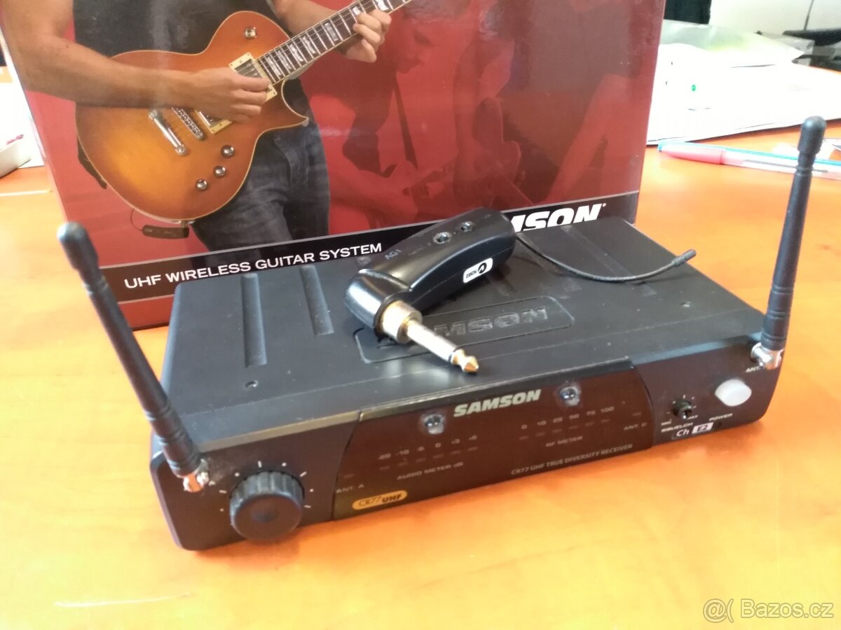 Prodán bezdrát Samson, zahnutý jack, pro kytaru /baskytaru. Frekvence E2(863.625Mhz), vysílač + přijímač. Spolehlivé.