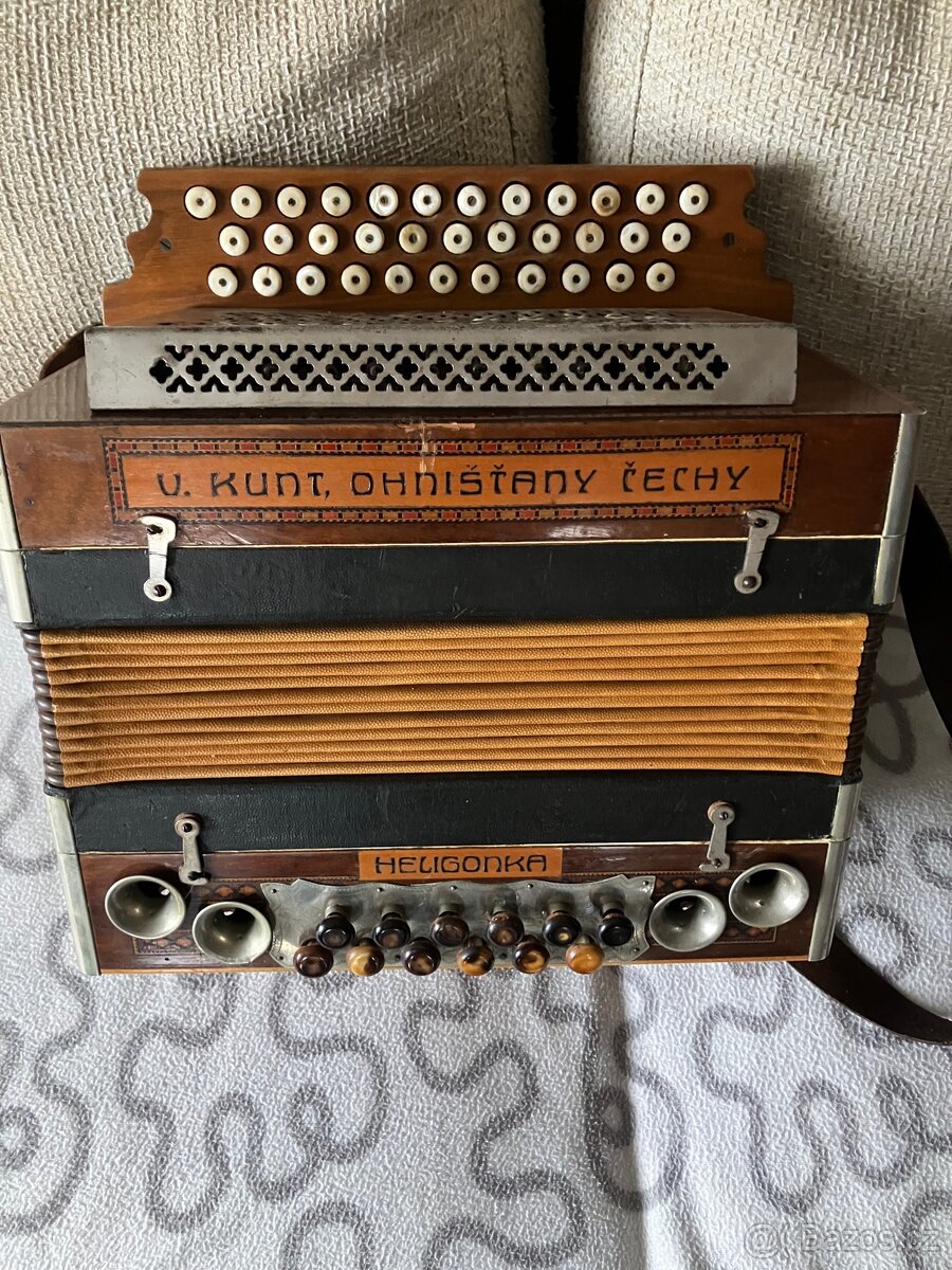 Heligonka (harmonika,akordeon) Novak G-C-F - TOP - [2.1. 2026]Nádherná heligonka Novak v G/C/F ladění. Unikátní harmonika s úžasným zvukem. Obdobné rozložení tónů jak u heligonky Hlaváček - tzn. stoják ve druhé a třetí řadě. Pevný kufr součástí. Sběratelský kousek.