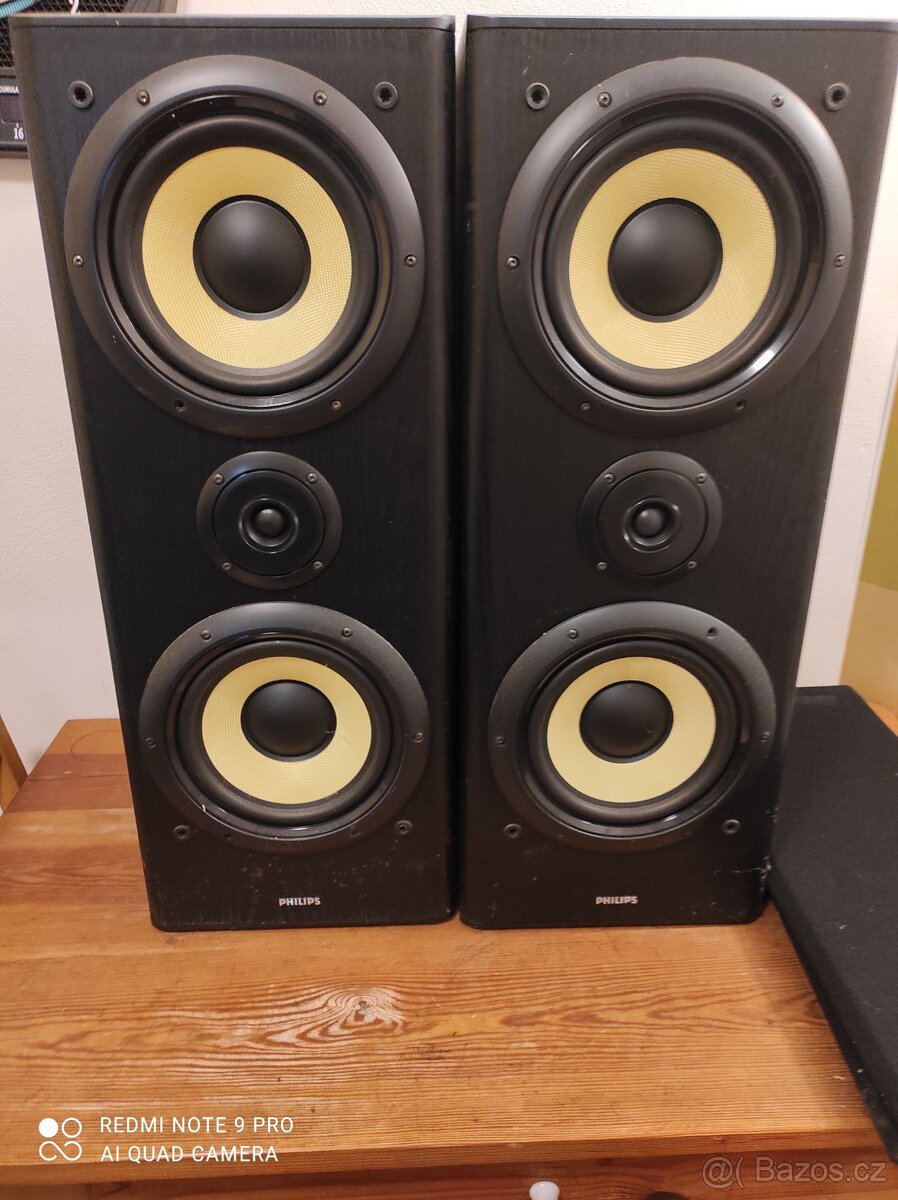 Reproduktory Philips - [28.12. 2025]Dvoupásmové reprobedny Philips od Hifi věže FW-P750 používané jako aparatura k TV. Přecházím na bílou barvu. Hrají pěkně a rozhodně líp než repro v Tv :D. Středobass průměr 12cm. Výkon nevím ale plně dostačují do obývacího pokoje. Impedance 6 Ohm