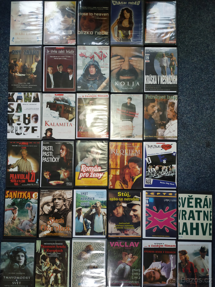 Prodám na original DVD české filmy. Babí léto, Bony a klid, Blízko nebe, Crash road, Čas sluhů, Čas dluhů, Dny zrady, Je třeba zabít Sekala, Krysař, Kolja, Kráska v nesnázích, Kawasakiho růže, Kalamita, Milenci a vrazi, Musíme si pomáhat, Petrolejové lampy, Pravidla lži, Pasti pasti pastičky, Romám pro ženy, Requiem pro panenku, Rebelové, Sanitka5, Slasti otce vlasti, Smrt krásných srnců, Stůj nebo se netrefím, Šeptej, Tmavomodrý svět, Tajemství hradu v Karpatech, Venkovský učitel, Václav, Výchova dívek v Čechách, Vratné lahve, Želary. cena 100 za vše. Mám i další inzerci.