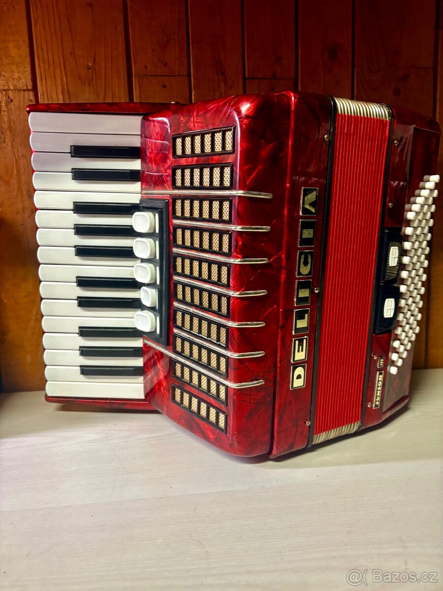 - [12.4. 2026]Prodám hezký akordeon delicia junior 60 basů, vizte foto, má 60 basů, je plně funkční, není nový, ale pro běžné hráče postačí. Má ideální velikost také pro začátečníky, není těžký, vhodný také pro hraní ve stoje či cestování. Má dva rejstříky a moder ...