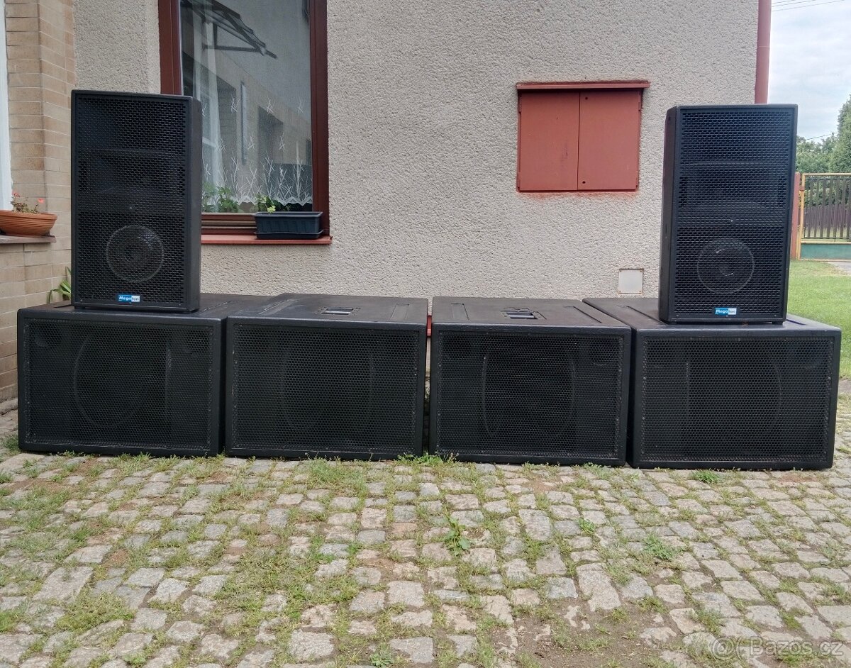 Z důvodu nevyužití prodám 2x originální třípásmový reprobox Megaton ND374 a 4x subwoofer EAW SB1000 copy výroba Lohonka s reproduktory Beyma 18P1200nd. Reproboxy jsou plně funkční, mají pouze pár šrámů od manipulace. Po montáže nástavce se dají třípásmové boxy umístit i na stojan. Výkon celé sestavy je cca 12kw. Upřednostňuji prodej celé sestavy za cenu 98tis kč, případně prodám jen subwoofery za cenu 12tis kč za kus. Samostatné třípásmové boxy bych prodal pouze po prodání subwooferů za cenu 25tis kč za kus. Ceny jsou pevné.