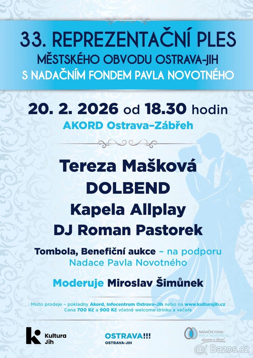 Prodám dvě vstupenky na ples v DK Akord Ostrava, cena za obě 1300kc, původní cena 700kc za kus.