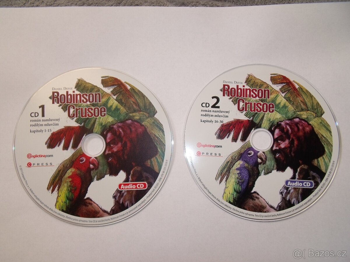 Prodám těchto 5 CD angličtiny a to: Angličtina v práci 3CD, Robinson Crusoe 2CD, Obchodní korespondence. Poštovné +75Kč balíkovna při platbě předem.