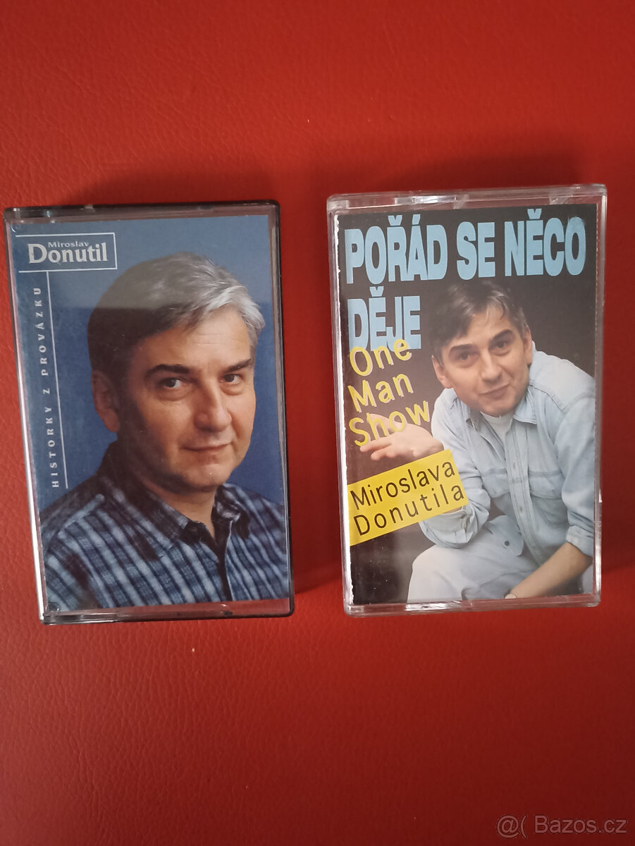 Dobrý den, nabízím k prodeji kazety s humorem Miroslava Donutila - Historky z Provázku, Pořád se něco děje. V perfektním stavu,zasílám dobírkou. Cena za 1 ks - 170 Kč, při koupi 2 ks cena 300 Kč.