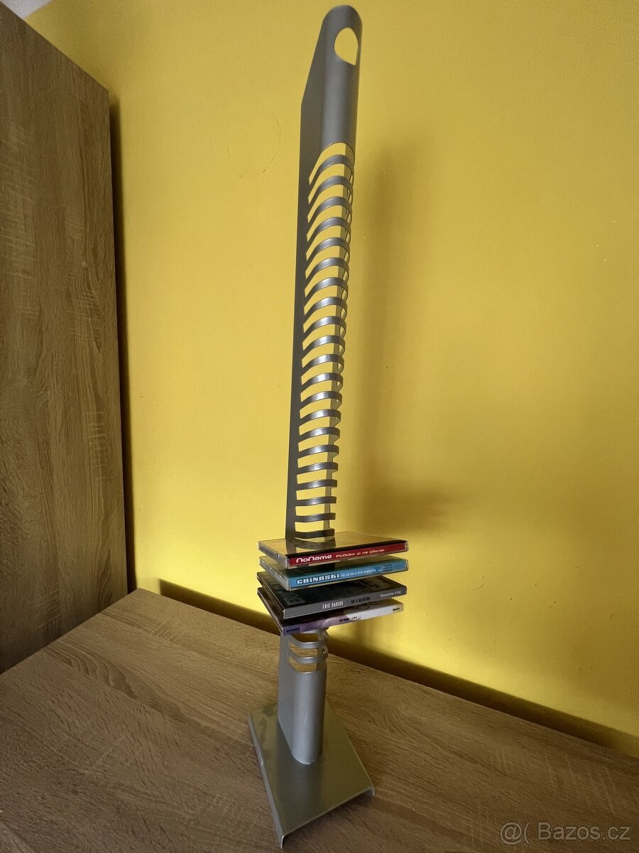 retro, stojan na cd, 88cm vysoky, az na 30 cd-cek, hlinik,
