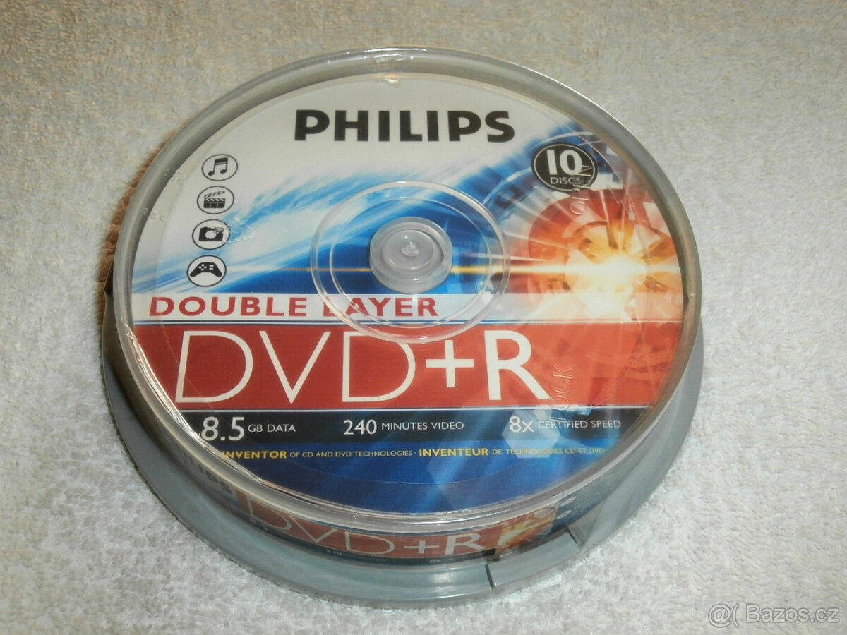 Nabízím média Philips DVD+R Double Layer 8,5 GB, balení 10x cakebox, nové, originál zabalené ve fólii.
