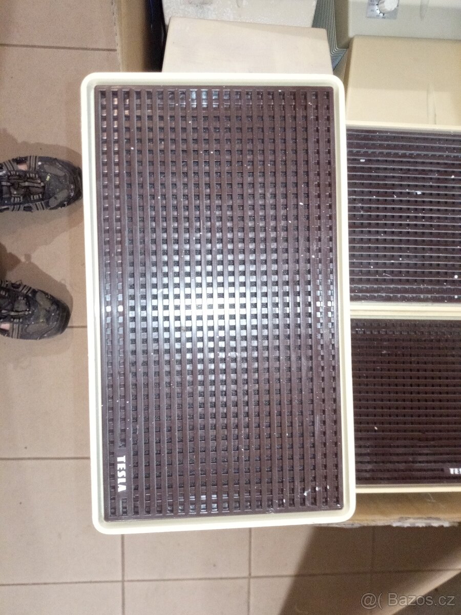 Prodám cca 20 kusů reproduktorů, které byly doposud funkční. Jedná se převážně o značku Dexon, ale je tam asi 5 kusů Tesla. Postupně demontuji a budu mít i k nim hlavní ústřednu, která umožňuje hlášení přes mikrofon, přehrávání audio kazet, CD, rádia, také značky Dexon. Ale zatím prodávám jen reproduktory.