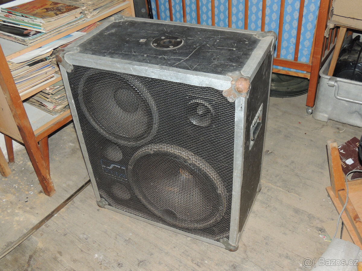 Zdravím. Prodám velkou reprobednu, vhodnou například jako zpěvovou. Stav dobrý, jen z prostředku jednoho repráku je upadlé víčko, což na funkci nemá vliv a snadno jde přilepit. Ideální pro kapelu