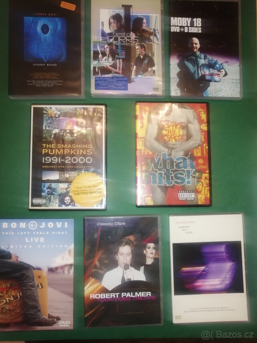 The Corrs, již prodáno. Moby 18 DVD +B singles CD prodáno.The Smasshing Pumpkins, 1991-2000 DVD.Red Hot Chili Peppers, what hits!. Bon Jovi, This Left Feels Right, Live, Limited edition 2 DVD. Robert Palmer, Addictions The DVD. Joni Mitchell, Shadows and Light.