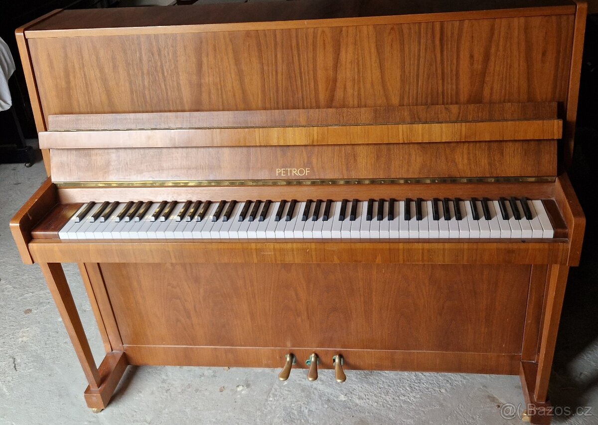 Prodám moc pěkné piano Petrof. Model 118, výška 118cm. Piano je po 1. majiteli. Piano je prakticky nehrané. Mechanika Tofa. Pěkný zvuk. Vyrobeno v Hradci Králové. Povrch je hnědý satén. Rok výroby 1990. K pianinu můžu přidat klavírní židli.