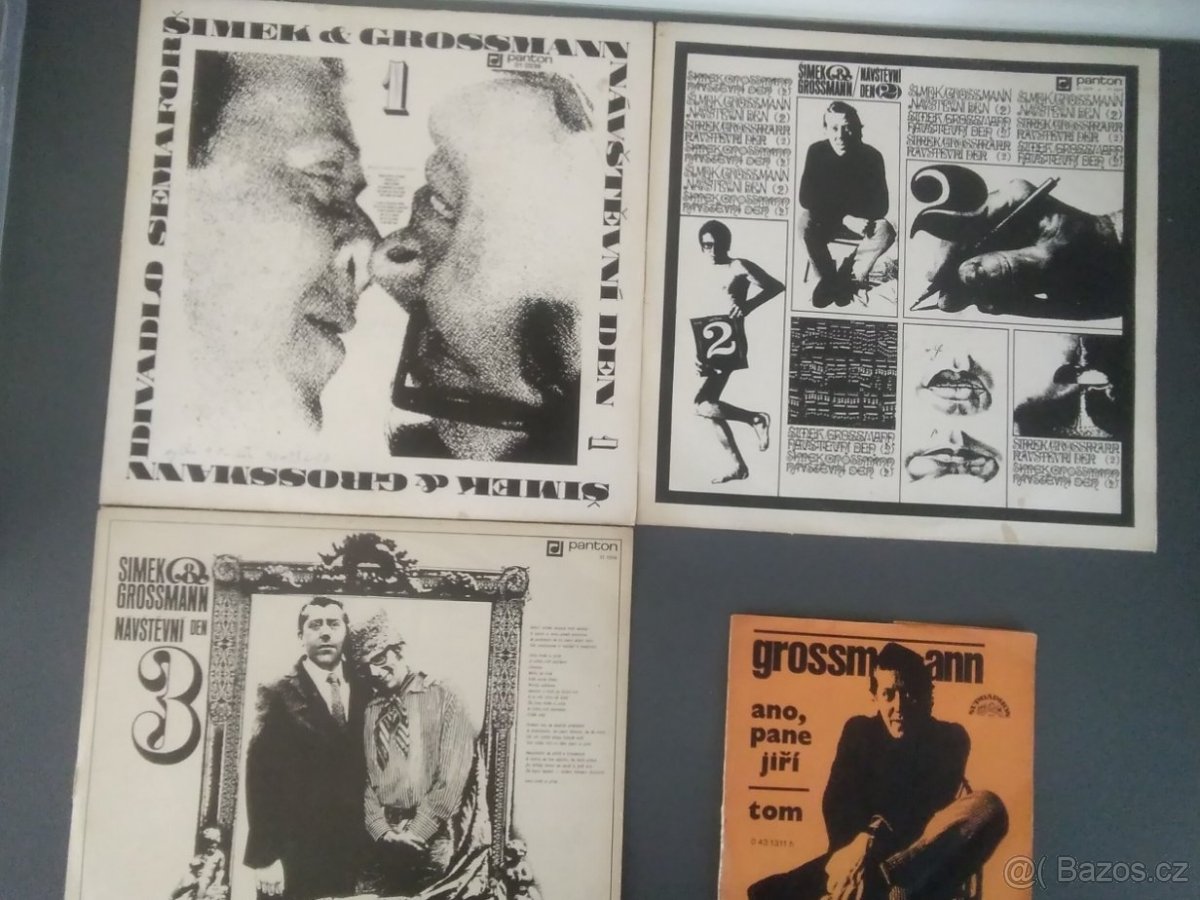 Prodám LP vinyl mluvené slovo Návštěvní den od Šimka a Grossmanna 1.2.a 3.dil (1970, 1971 a 1972). První díl je již prodán. Nejpopulárnější píseň Jiřího Grossmanna Ano pane Jiří-prodána. VŠE V DOBRÉM STAVU. Cena za LP 170 Kč /ks.