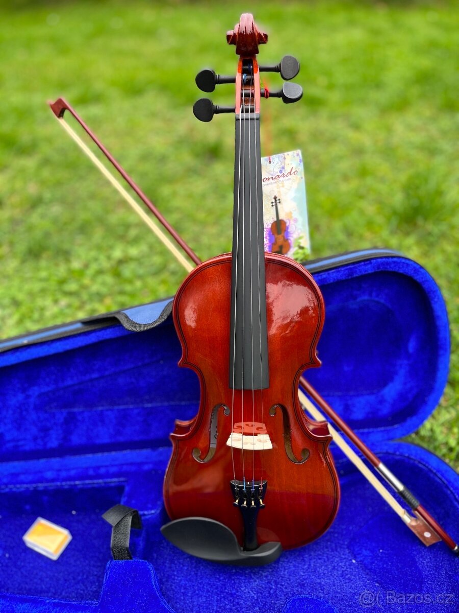 4/4 celomasivní huslový set je zcela nový bez škrábanků.