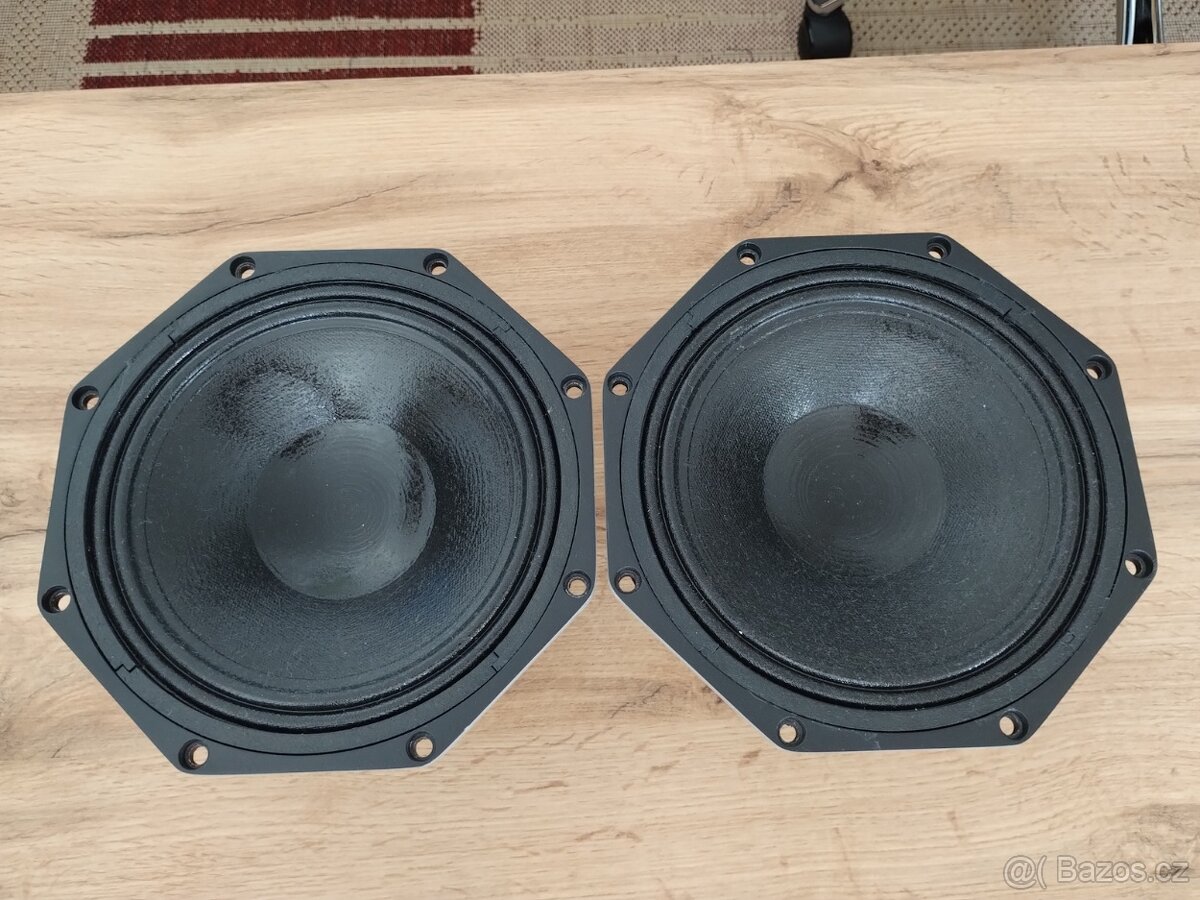 Použité reproduktory (doma pro hifi, nikdy PA); impedance 8 Ohm. Upozorňuji, že po obvodu jim chybí barva (byla odstraněna proto, aby se snáz vešly do vyfrézovaného zapuštění); na fotkách to je vidět. Pokud budou zapuštěné, nepůjde to vidět. Osobně Brno nebo balíkovnou do výdejny +70 Kč. Platí do smazání.