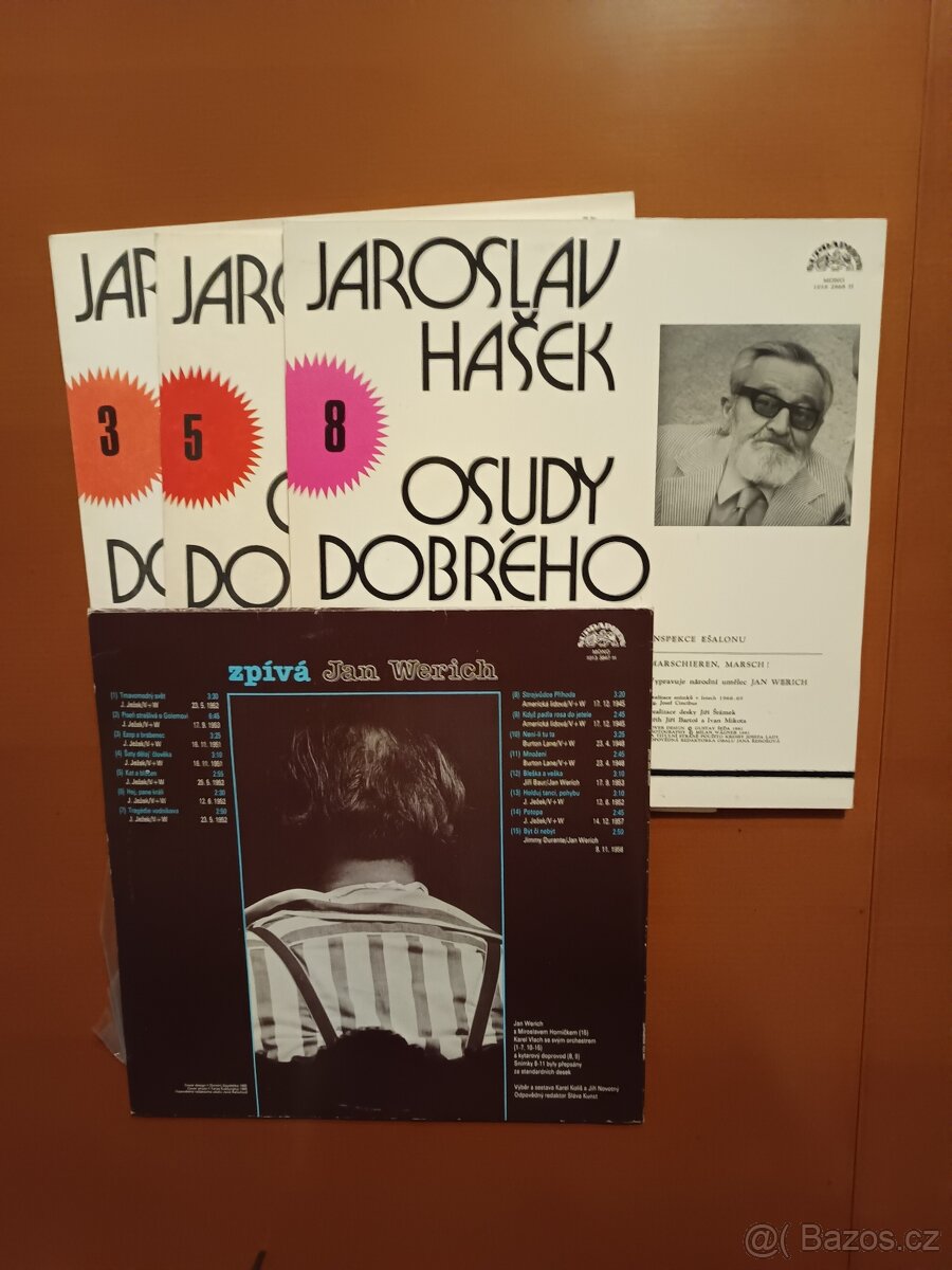 Jan Werich čte Osudy dobrého vojáka Švejka 3, 5, 8 a LP Zpívá Jan Werich. Cena je za soubor. Předání v Praze.