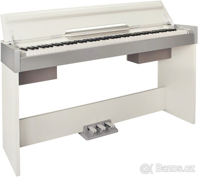 pěkný bílý klavír výborný zvuk,88 dynamických kláves s kladívkovou mechanikou (třeba do hudební školy!) 3 pedály, 26 zvuků, 2x25W reproduktory, připojení na tiché hraní přes sluchátka, aby sousedé byli klidní.Mám i lavicu na prodej .Mohu poslat na dobírku.