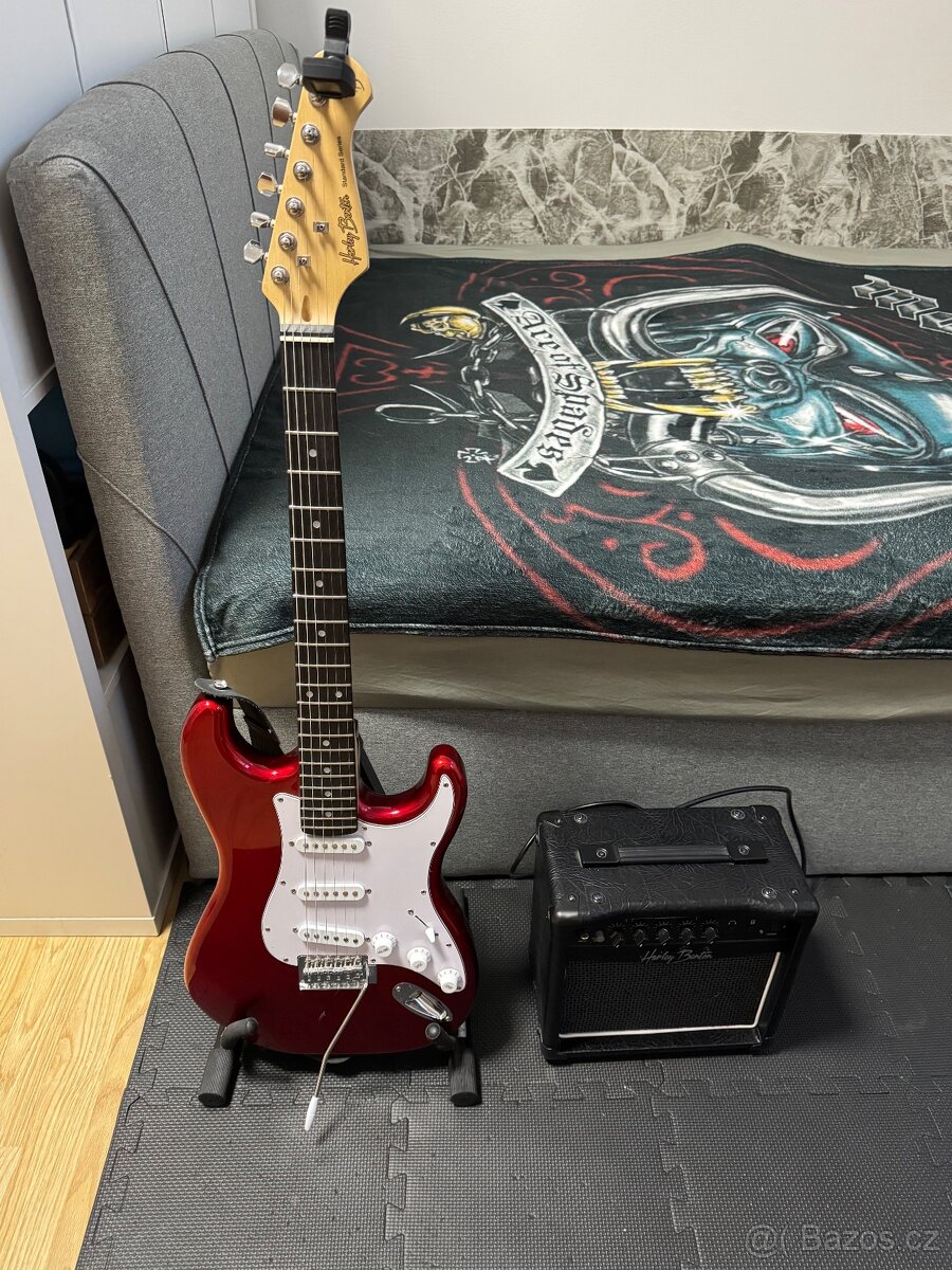 Dobrý den nabízím elektrickou Harley benton kytaru včetně stojanu , ladičky ,popruhu a komba harley benton vhodné pro začátečníky vše je funkční bez vad při zájmu prosím psát mail nebo sms jsem i na whatsappu . Prosím nevolat děkuji za pochopení .