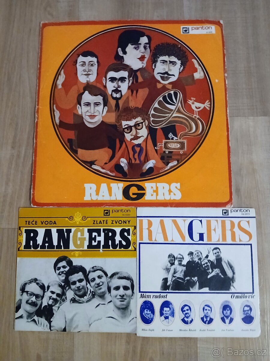 Prodám 3 gramofonové desky skupiny Rangers, 1 velkou a 2 malé, zachovalé, cena celkem 70,- Kč.