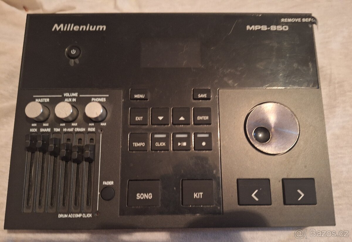 6 faderov na nastavenie hlasitosti každého padu, ako aj metronómu a skladieb.