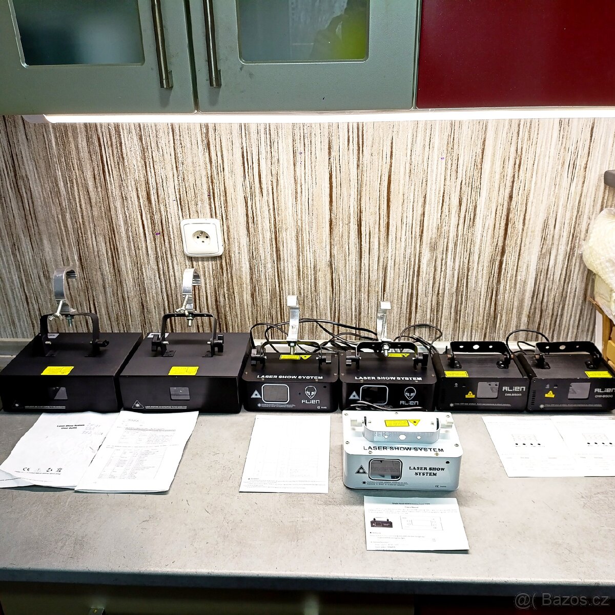 Prodám ruzné lasery .. 6 ks cca 5x použitých a v předu býlí nový laser .. Z leva : 2 kusy 2 waty RGB ....,prostřední 2 kusy 600 Mwat RGB .... , v pravo 2 kusy 500 Mwat Blue ( modrý) + Dálkové ovladače ... V předu býlí NOVÝ 600 Mwat RGB ( někdo preferuje býlounbarvu zařízení na Svatby ) ..všechny lasery jdou ovládat přes DMX , vnitřní programy nebo na hudbu ( vnitřní mikrofon) ..žádný laser nemá ILDU .. lasery svití super v poměru výkon / cena ..ceny od 1600 kč ...po dohodě mohu udělat videa .. možnost poslat .. ceny dohodou dle odběru .. Mrkněte na další moje inzeráty: v nabídce i 5 watové lasery RGB , různé výrobníky mlhy i Hazery ( super na zviditelnění laserů ) ..dále nabídce : Led hlavy ,blindery,stroba atd , různé přepravní Case,zvuk , kabely, ohně, ohňostroje ,CO2 efekty , bublifuky atd