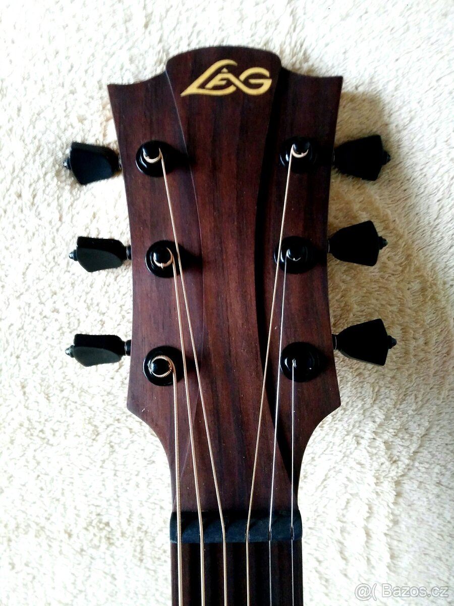 Akustická gitara s tvarom tela auditorium zo série LAG Tramontane.Vrchná doska: Masiv Engelman Smrek.Gitara ma krasny zvuk a dobre ladi. Ma malu opravu popraskaneho laku na zadnej strane kde to pri použivani ani nie je vidiet.