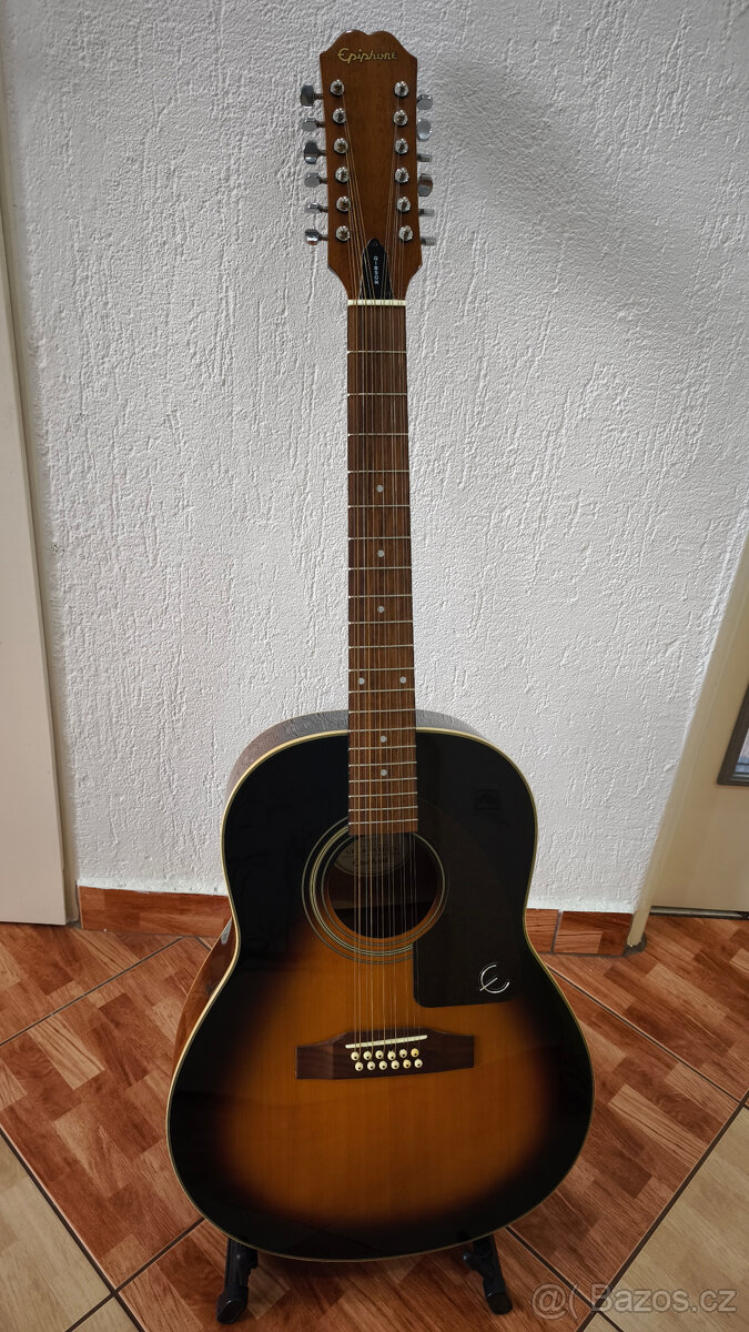 Prodám 12strunnou akustickou kytaru Epiphone.Kytara má i snímač a je možné ji připojit do reproduktorů.Je prakticky nepoužitá a vykazuje stav nového nástroje (bez poškození, odřenín i škrábanců).