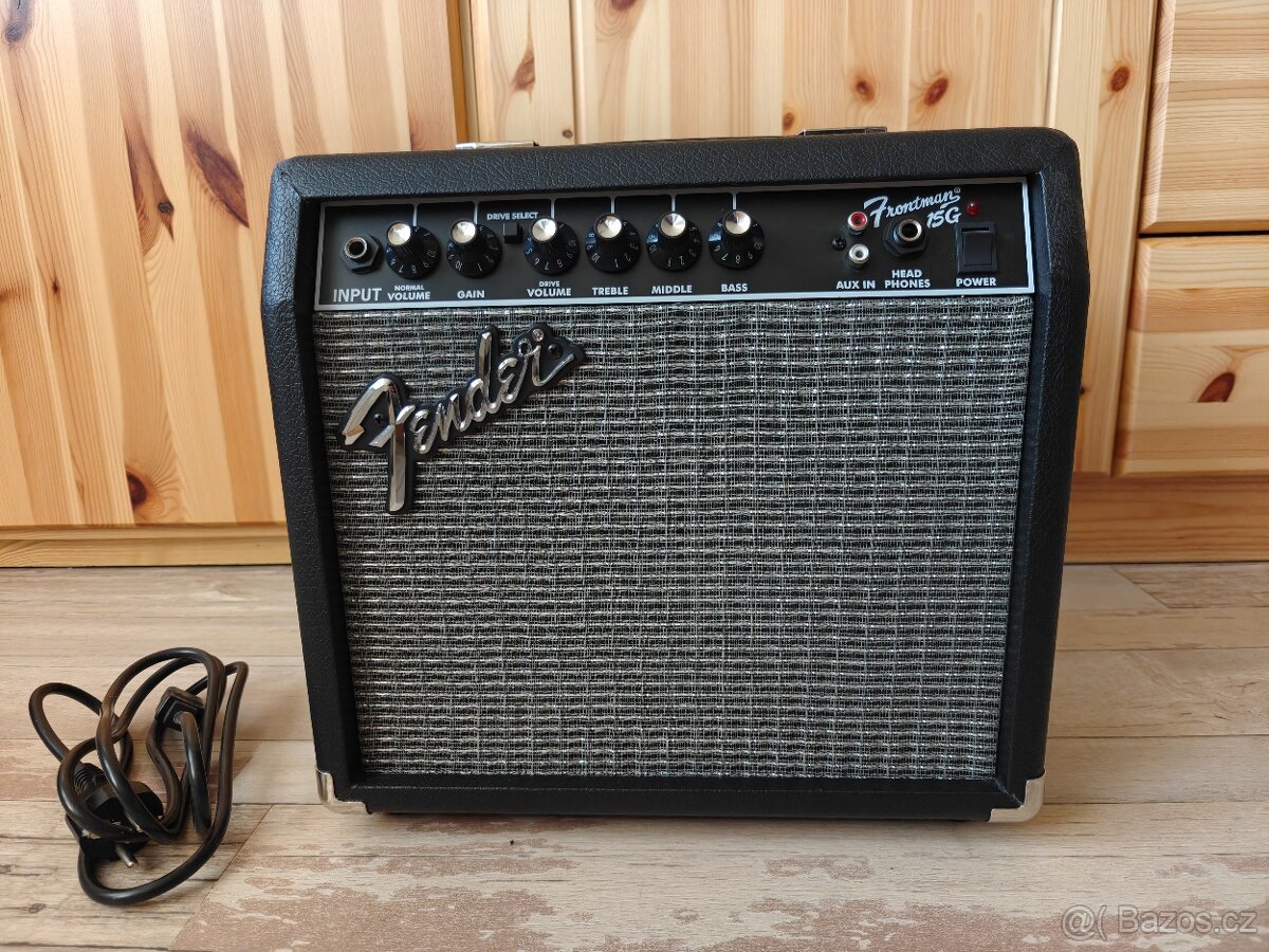 Prodám kytarové kombo Fender Frontman 15G. Kombo bylo používáno na domácí hraní. Kombo disponuje výkonem 15W, jedním 8" reproduktorem, dvěma zvukovými kanály (čistý a zkreslený). Váha 6,8kg rozměry 31,8x33,7x18,4cm (VxŠxH).