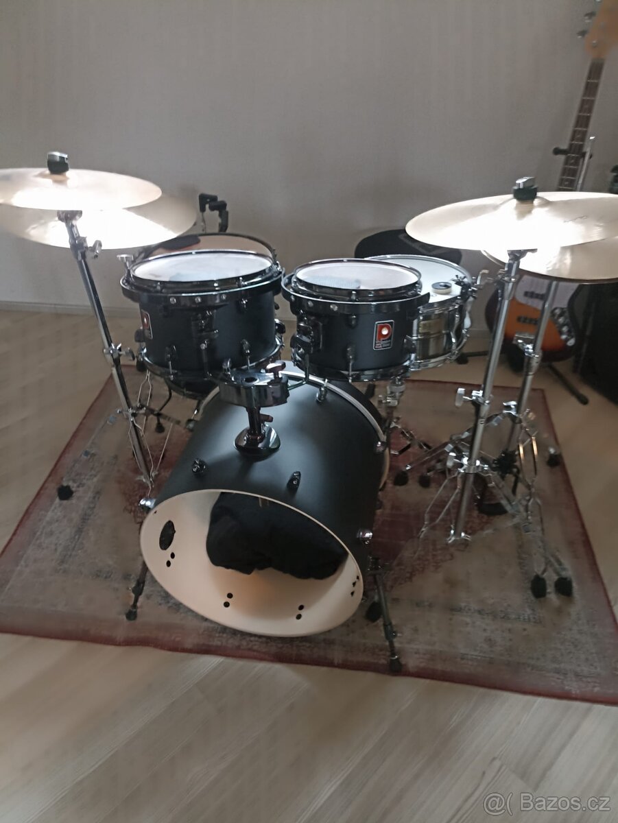 Prodám kompletní bicí soupravu značky Premier v atraktivním černém matném provedení. Bicí jsou ve skvělém stavu, opečovávané a připravené k okamžitému hraní. Ideální jak pro mírně pokročilé hráče, tak jako kvalitní základ do zkušebny.