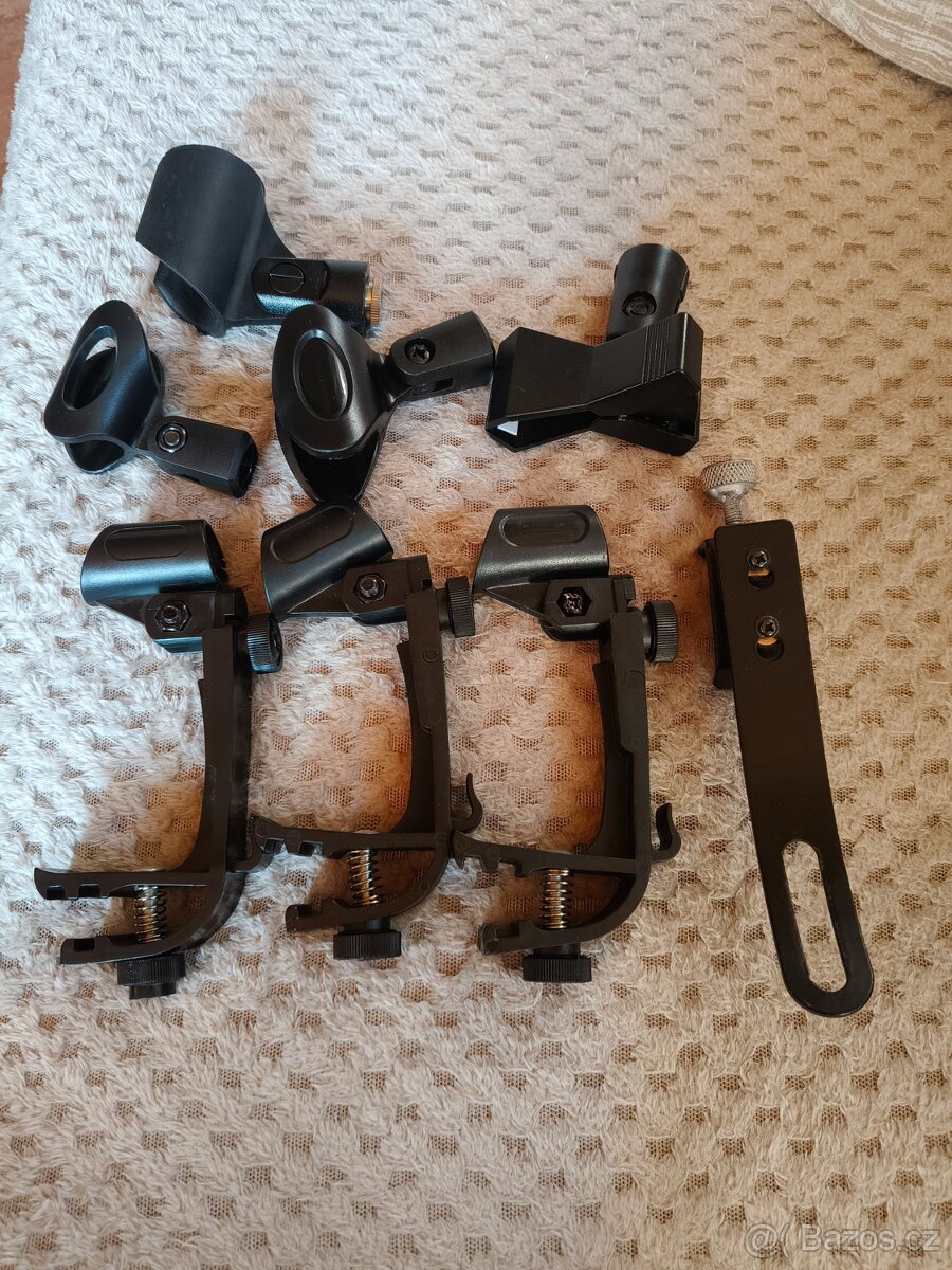 JARNÍ ÚKLID prodám držáky - mikrofony bicí + objímky, většina nové, nepoužité. Cena za vše