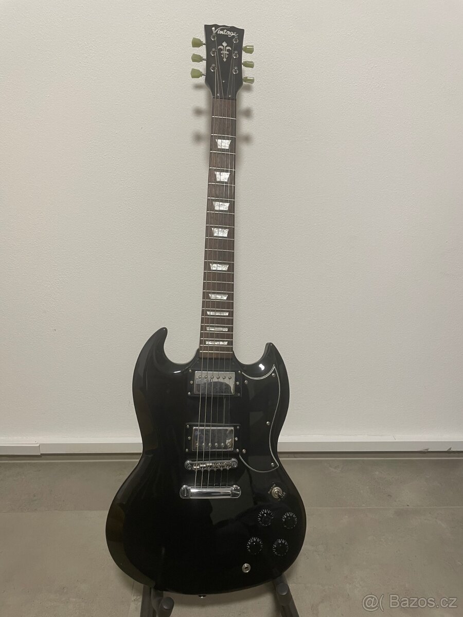 Prodám kytaru Vintage VS6. Tvarově SG, snímače H-H Wilkinson.