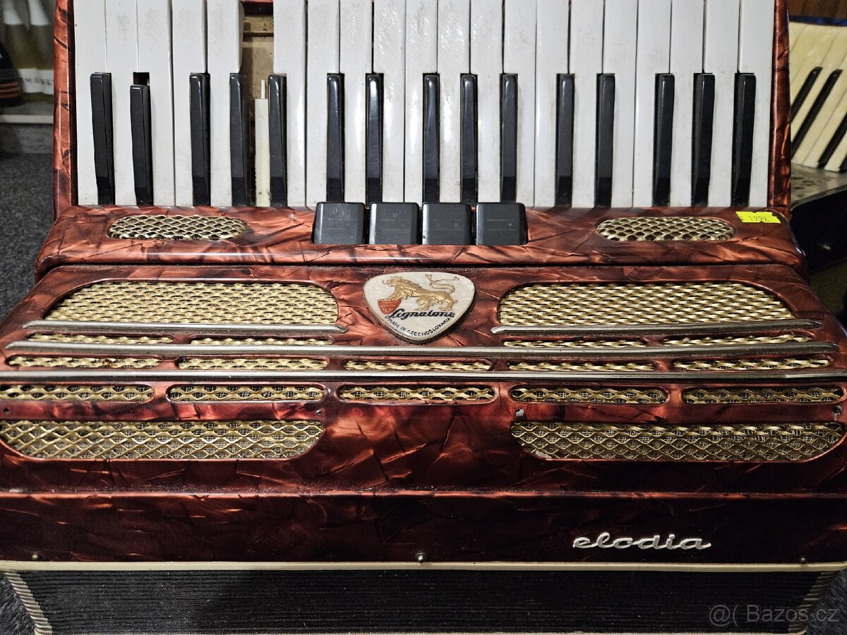 Akordeon Lignatone Melodia 80b v nálezovém stavu. Chybí jedna klávesa a nutno přeladit nebo k dekoraci. Bez kufru.
