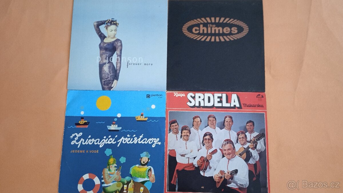 Prodám 4 LP různých vydavatelství a žánrů: 1.P.Johnson: Forever More (Columbia Work 1996), 2.The Chimes (Direkt 1990), 3.Zpívající přístavy: Jedeme k vodě (Panton 1971), 4.Klapa Srdela Makarska (RTV Ljubljana, rok vydání neuveden). Cena 90kč/ks, při odběru všech 270kč celkem čili 1 LP zdarma.