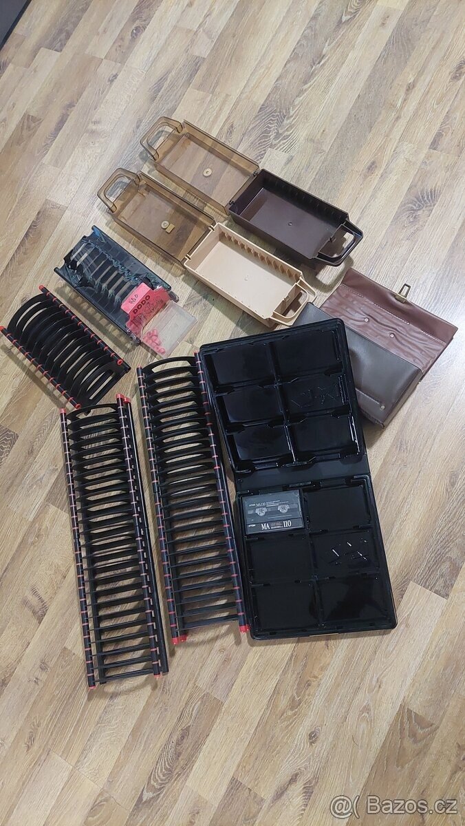 Retro boxy a stojany na audio kazety, v zachovalém stavu jako celek za všechny 600 Kč, osobní předání nebo můžu poslat poštou při platbě předem, zásilkovnu si zařídí KUPUJÍCÍ