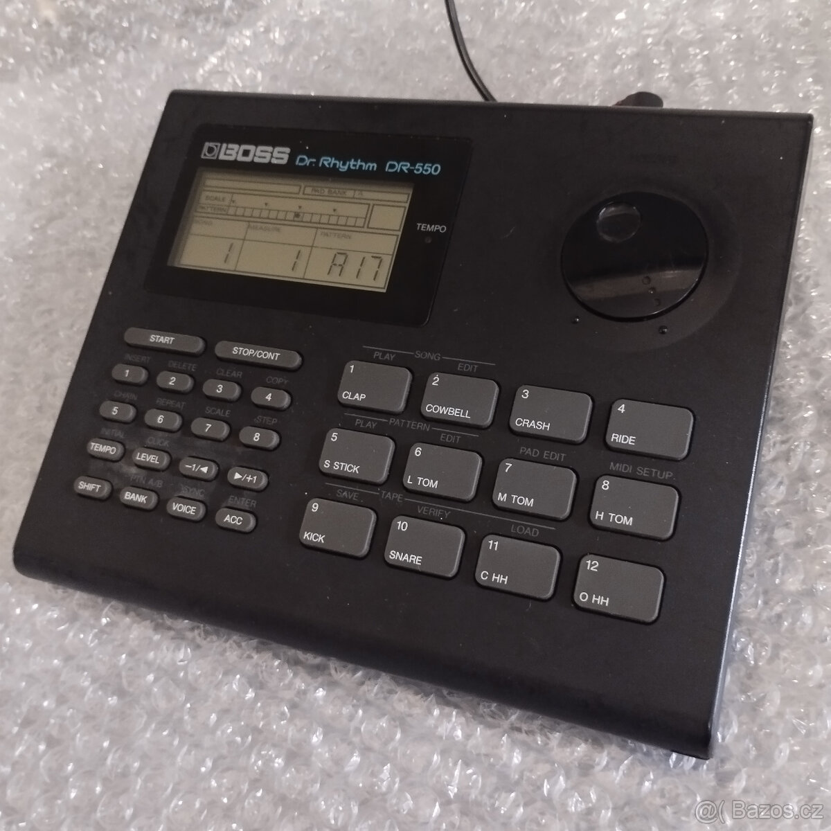 Prodám plně funkční bicí automat Boss Dr-550, provoz i na baterie, prodávám bez adaptéru! 9V obrácená polarita (mínus na střed) jak je u Rolanda zvykem.