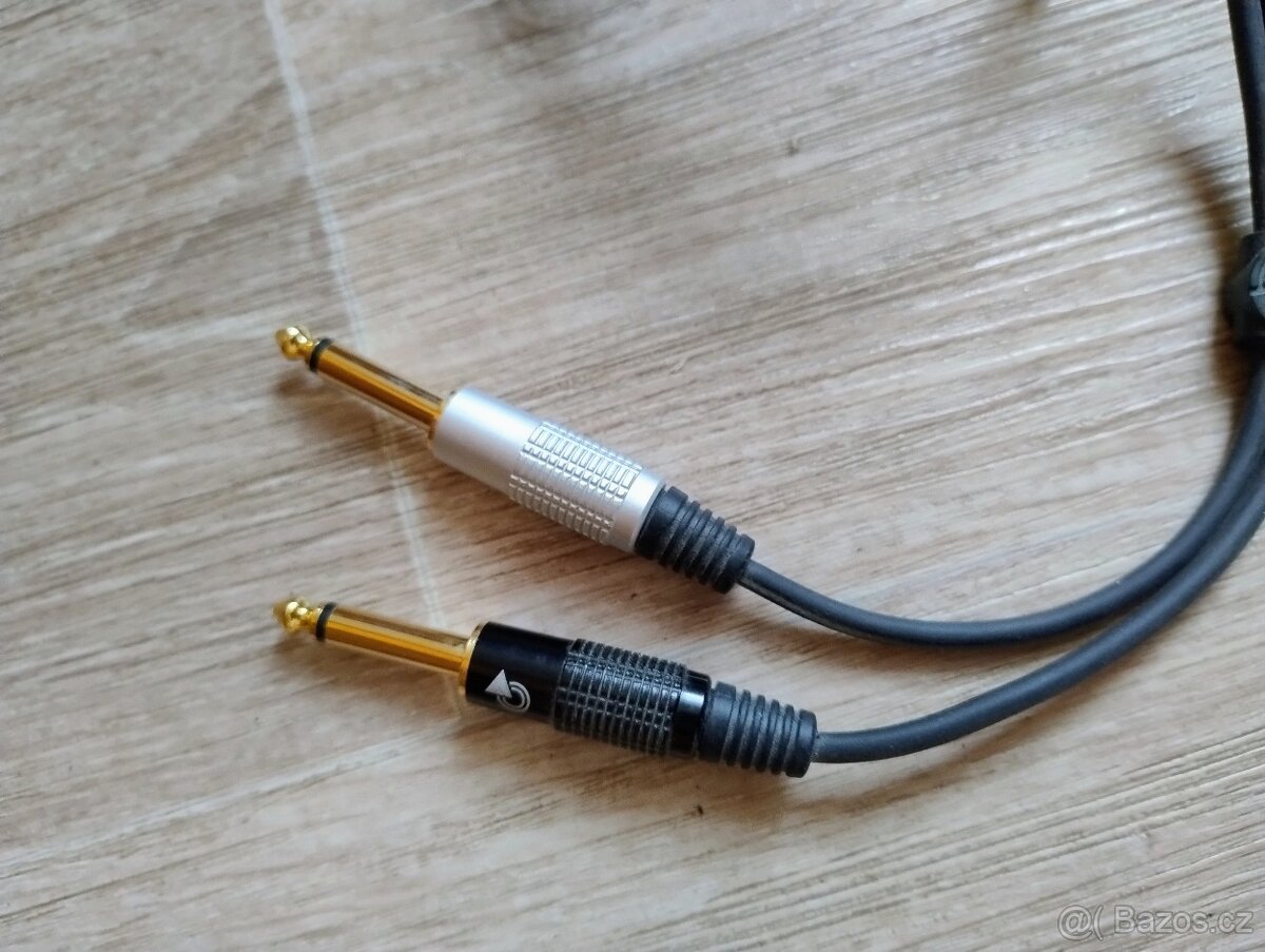 Prodám stereo kabely 3 kusy konektor 6 mm délka 2 kusy 3 metry 1 kus 1;4 metrů značka Bespeco