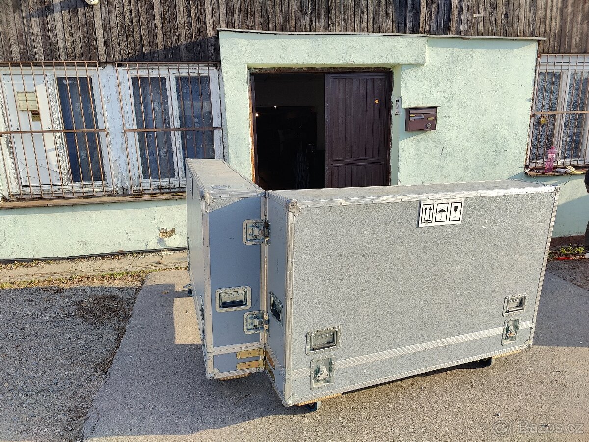 Prodám transportní case na kolečkách (původně od televizorů LG velikost 2x55" a 2x stojan na podlahu Audipack), vhodný asi na nějakou úpravu například pro mobilní výčep, bar, kuchyni, dílnu, atd... Vnější rozměry 160x113x60cm. K dispozici i více kusů, dohoda na ceně možná.