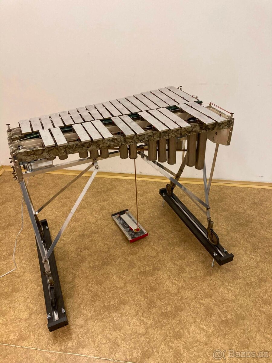 Prodám vibrafon Rohrphon. Nástroj je renovován- byl bez motorku, ten je ze šicího stroje, pedalizace opačná, než je běžné, více viz foto. Nástroj jsem nabízel do Českého muzea hudby (dvakrát bez odpovědi). Počítám, že by tento kousek mohl zaujmout spíše zběratele, než muzikanta.