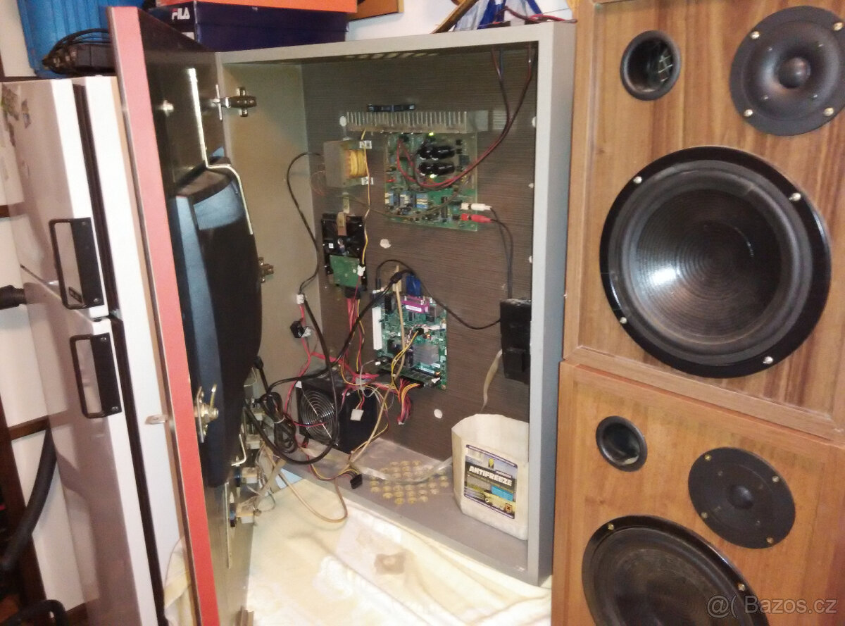 Jukebox - [1.3. 2026]Prodám plně funkční Jukebox, dálkové ovládání 2x kliče,bere mince 5,10,20 ,možnost dovozu po Ostravě zdarma