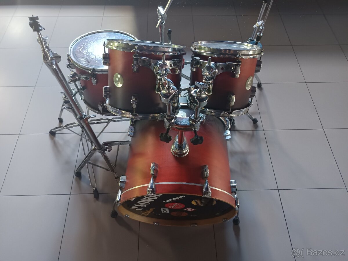 Optický stav 90%, blány komplet sada - Evans RCC 2 level 360 bez jakéhokoliv důlku od paliček - výborný stav. Jediná úprava je na uchycení tomů, viz foto. 3x stojan na činel, 2x stojan H-H z toho 1x sonor, 2x stojan snare, 1x dvojšlapka, Ride Paiste 502 18" + hihat Paiste 502 13". Horní díl hihat má jednu prasklinu cca 2 cm - dá se vybrousit. Viz foto. Prodám nejraději jako komplet. Možno vyzkoušet. I rozumné dohodě se nebráním. Mohu poslat i foto jednotlivých částí.